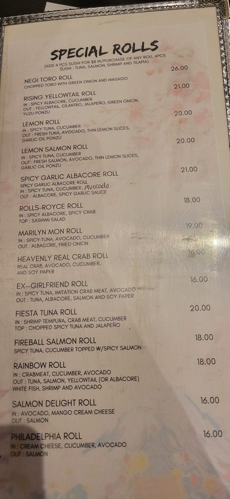 Introducing the menu at Tatsu Sushi Japanese Cuisine in Burbank, CA. This small neighborhood gem offers a variety of sushi, sashimi, and rolls that are sure to satisfy your cravings. The menu also includes vegan and vegetarian options, making it a great choice for all types of diners. With a casual and intimate atmosphere, Tatsu Sushi provides a relaxing dining experience perfect for a dinner with friends or family. Customers have praised the freshness and quality of the dishes, such as the Tatsu Deluxe with delicious sashimi and the Spicy Garlic Albacore Roll. Whether you dine in or order takeout, you can expect prompt and friendly service at Tatsu Sushi Japanese Cuisine. Experience the hidden gem that is Tatsu Sushi and indulge in a flavorful and satisfying meal.